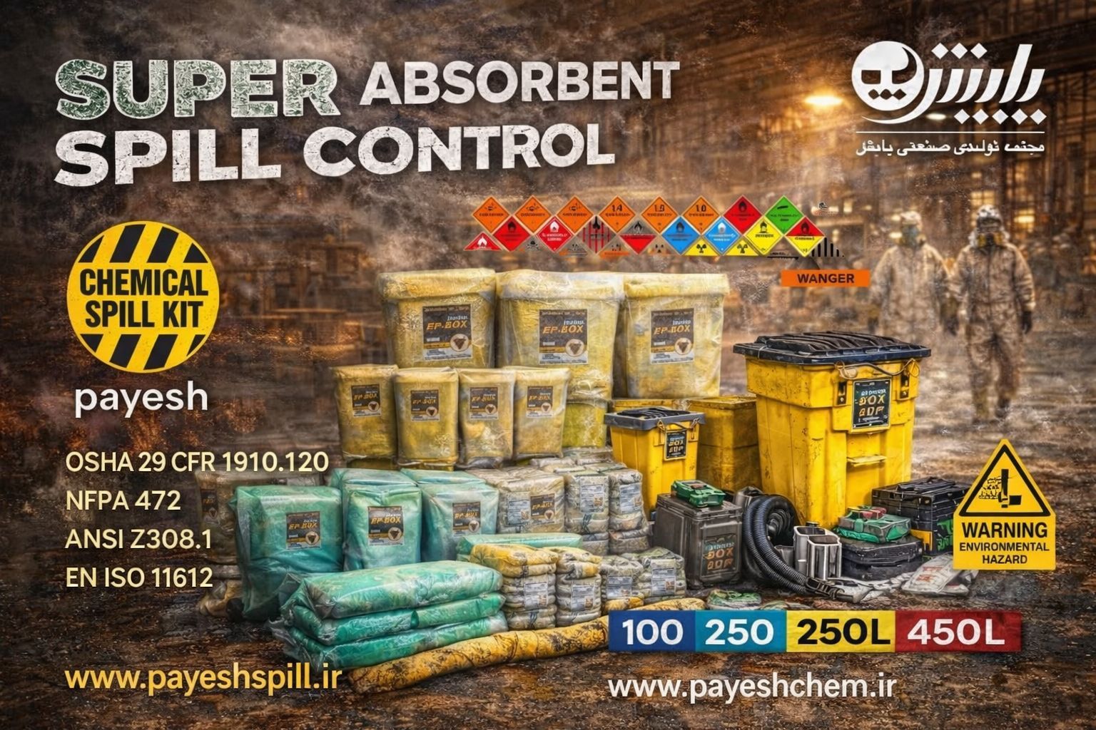 این شرکت با داشتن خط تولید در زمینه تولید تجهیزات مقابله با الودگی های نفتی ،تجهیزات C.B.R.N، تجهیزات هزمت ، تجهیزات هزچم و همچنین تجهیزات مقابله با الودگی های شیمیایی انواع اسپیل کیت ،چادر های رفع الودگی شیمیایی ،ایمنی شیمیایی ،انواع دستکش های صنعتی ، لباس ایمنی مخصوص ، لباس های ایمنی ضد اسید ، تجهیزات حفاظت محیط زیست ، تجهیزات محافظت تنفسی توانسته بصورت علمی و استاندارد و با داشتن مجوزهای لازم ازمرکز تحقیقات و تعلیمات وزارت کار و رفاه اجتماعی و رعایت نکات ایمنی و بهداشت در زمینه تولید با مدرن ترین دستگاه های روز بپردازد. در همین راستا توانسته ایم با تولید این نمونه محصولات رضایت کارشناسان و مهندسین بهداشت حرفه ای و ایمنی را در سراسر کشور جلب نماییم.